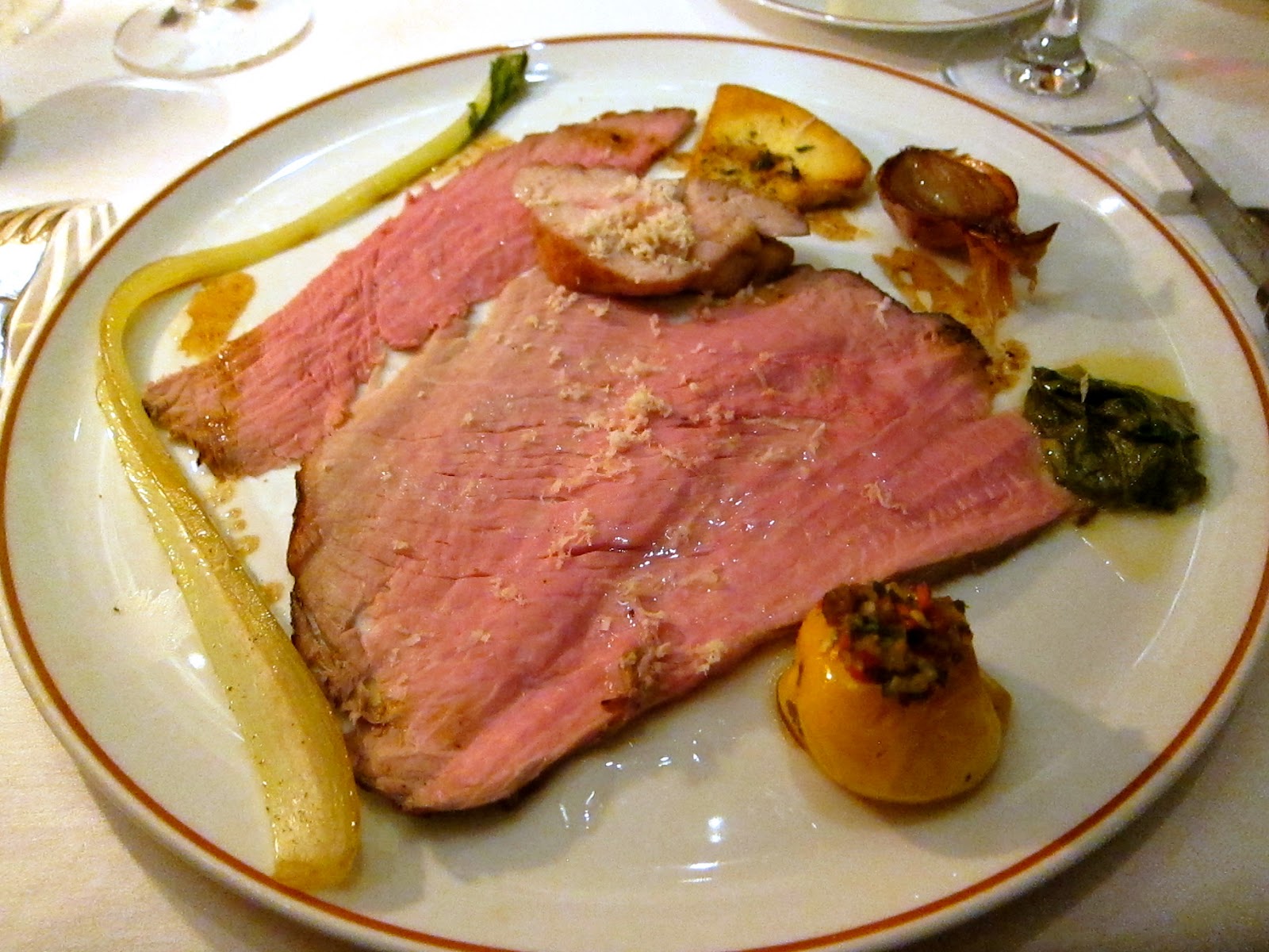 Veal rump, puffball mushroom, chard, horseradish, stuffed tomato and shallot