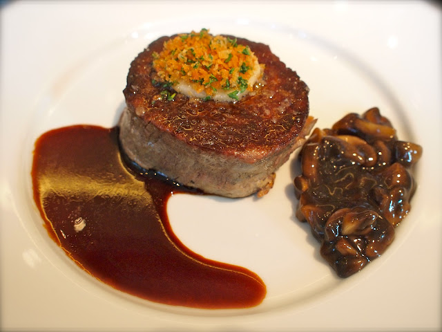 | Devon Ruby beef, sauce perigourdine, ceps, (and separately, pommes mousseline) |