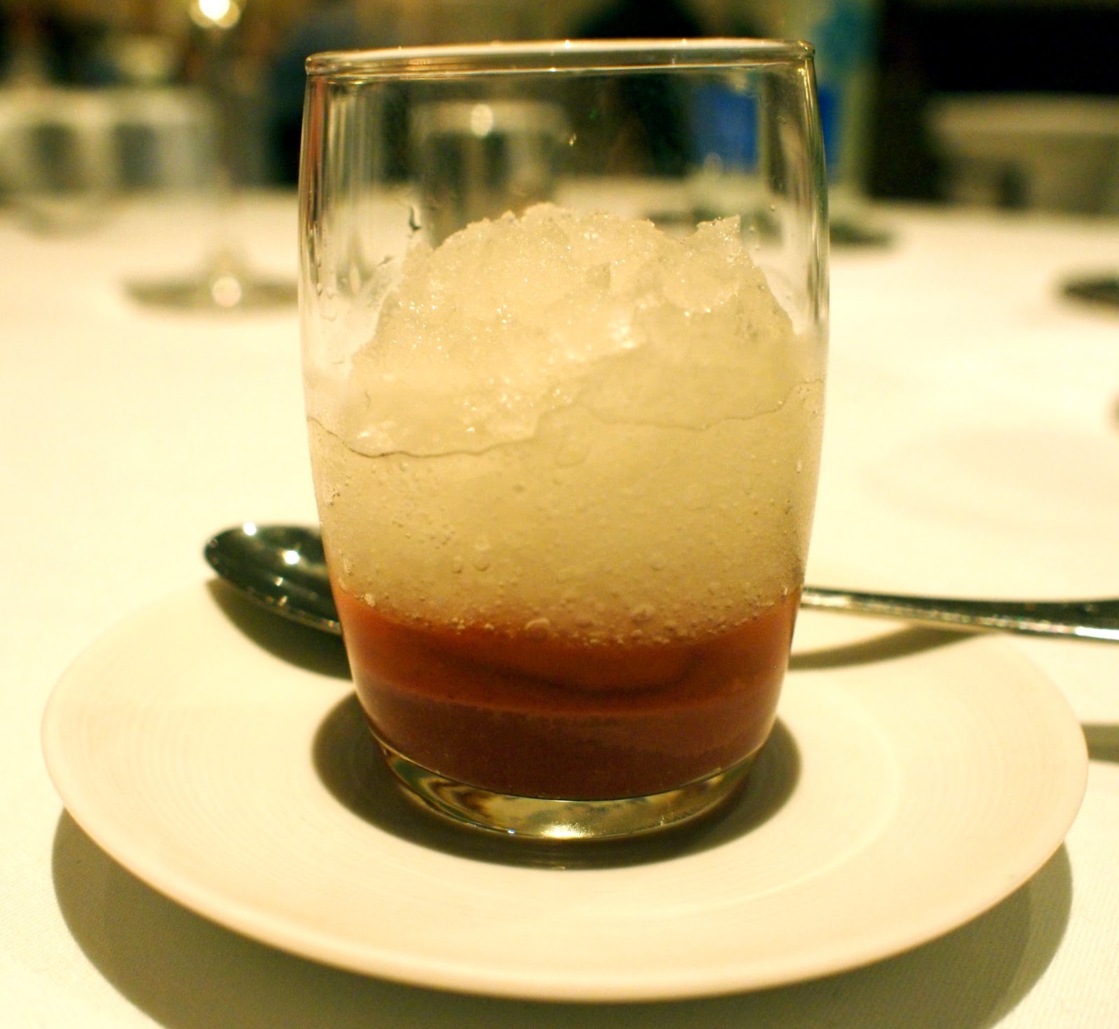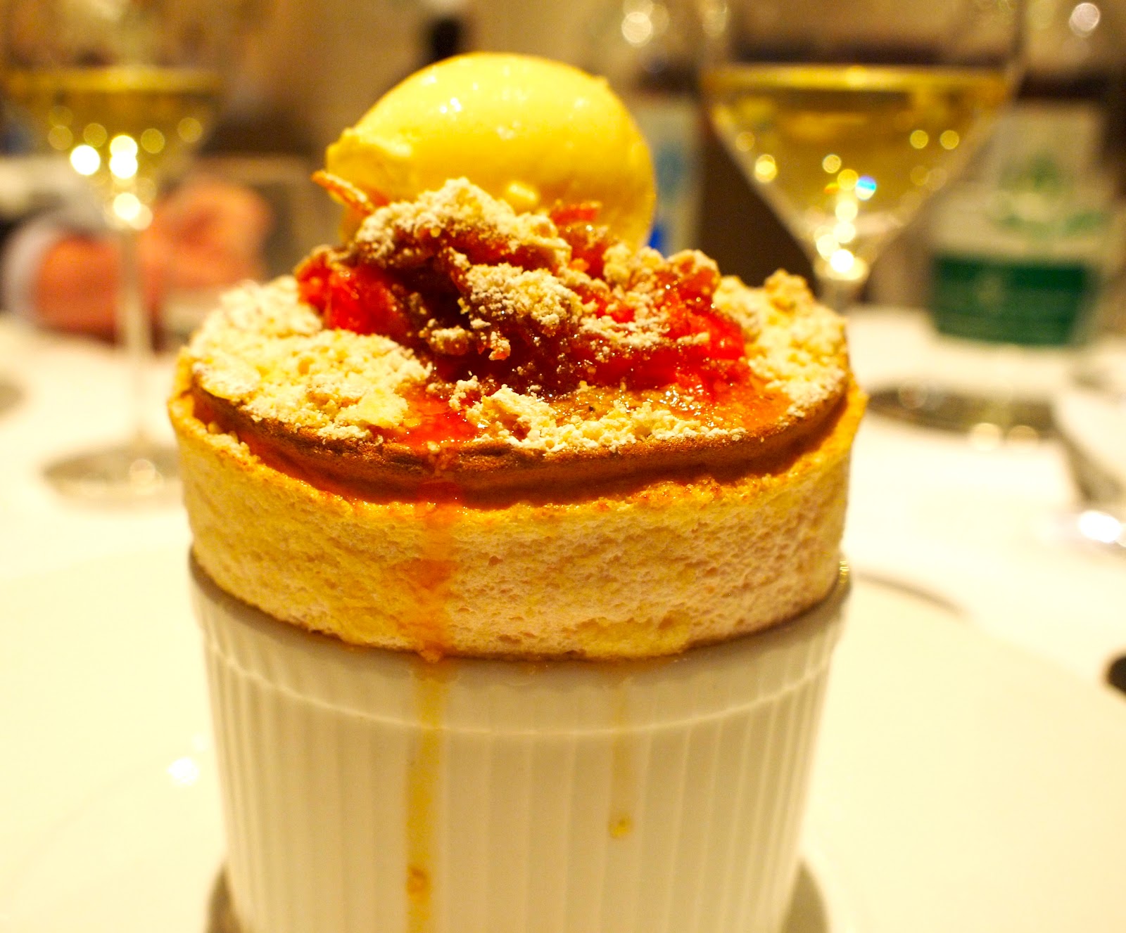 The pre-dessert of wild strawberries and champagne granita is a refreshing palate cleanser. The wild strawberry jelly was erring on the side of medicinal, but this is the thing with fresh seasonal produce – what you gain in seasonality can sometimes result in a slight loss in consistency. I would still rather have had this than imported giant strawberries from Spain.