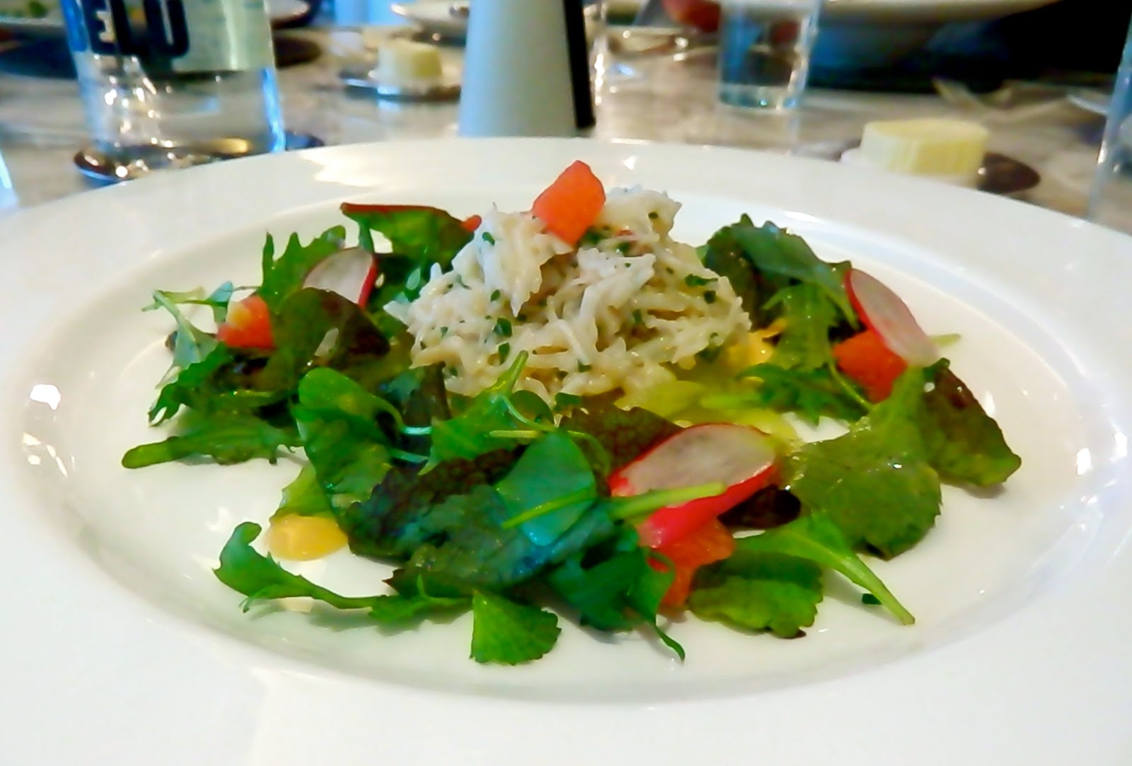In place of the faux Disney, there are now stuffed leather chairs, and Missoni fabric. Much smarter than the dining room at The Pig, but much more relaxed and comfortable than it’s previous incarnation. Playing to Luke’s strengths, the menu has a very strong Italian influence, and reflects the year Luke spent working at the three Michelin starred Enoteca Pinchiorri in Florence (excellent wine list, good food, insane water menu – yes – you read that correctly – a 30 page plus water menu…). And of course we all know that Angela’s an excellent pusher of Italian delights… Could this new incarnation live up to my expectations I wondered?